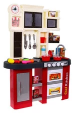 Interaktywna bordowa Kuchnia dla dzieci 3+ Palniki z dźwiękiem i światłem + Kran z wodą + Akcesoria 58 el.