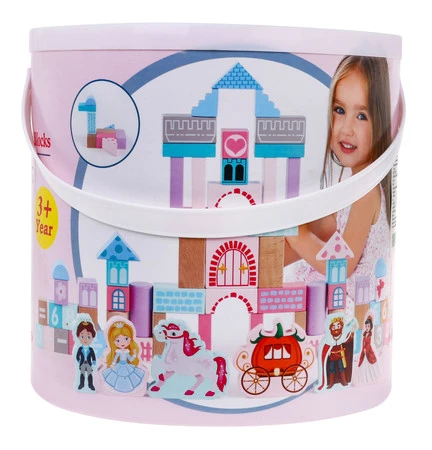 | | Zestaw malowanych drewnianych, bezpiecznych klocków z motywem księżniczki i zamku dla dzieci już od 3-go roku życia. Zestaw składa się z 67 elementów- klocków, w zestawie znajdują się też puzzle. Doskonała nauka kształtów, figur geometrycznych, oraz zabawa pobudzająca wyobraźnię i logiczne myślenie. Klocki zapakowane są w wiaderko, sorter na górze którego znajdują się otwory o różnych kształtach, do których należy dopasować odpowiednie klocki. |