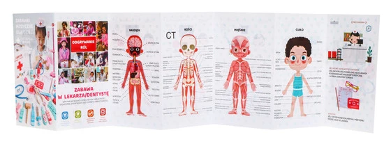 - drewniana ruchoma strzykawka 13.5x4x2.5cm, - drewniane nożyczki 11.5x6x1cm, - metalowy stetoskop, - drewniany syrop z odczepianą nakrętką 7x4x4cm, - drewniana imitacja maści 10x3x3cm, - drewniany termometr ze zmiennymi wskaźnikami temperatury 12x3x1.5cm, - 2x drewniane imitacje kapsułek 4x3x1cm, - 4x drewniane imitacje tabletek 2.5x2.5x1.5cm, - 2x drewniana imitacja tabletek 4x2.5x0.5cm, - drewniany identyfikator w kształcie misia 12x8x0.5cm, - plastikowy identyfikator wraz ze smyczą, - drewniana imitacja kropli wraz z drewnianą pipetką 8x4x4cm, - drewniana pęseta 10x1.5x1.5 cm, - drewniana podstawa wraz z wymiennymi karteczkami z informacją o stanie pacjenta + ołówek 18x13x0.5cm, - 5x plastry 7x2cm, - 3x naklejka „dzielny pacjent” w języku polskim 5x5cm, - 3x naklejka „dzielny pacjent” w języku angielskim 5x5cm, - drewniane walizka z metalowym zamknięciem i wygodnych uchwytem 25.5x20x9.5cm, - książeczka w języku polskim i angielskim ucząca dzieci budowy ciała człowieka (narządy, kości, mięsnie, ciało), - książeczka w języku polskim i angielskim ucząca dzieci w jaki sposób zachowywać się u danych lekarzy wraz ze wskazówkami . |