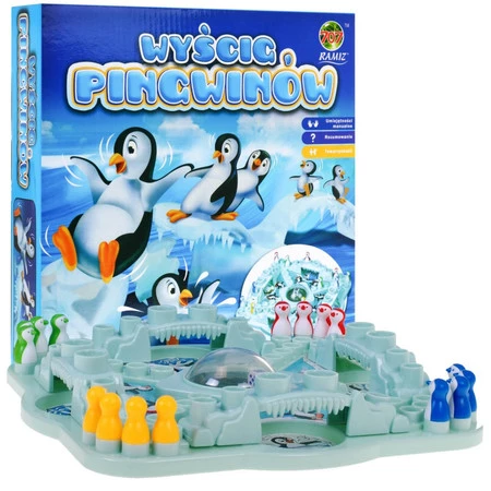 | Pingwiny poruszają się po specjalnie zaprojektowanej planszy z „lodowymi mostami” zgodnie z ruchem wskazówek zegara. Każda drużyna startuje z narożnika, po wyrzuceniu 6 oczek na kostce umieszczonej w centrum planszy, 1 pingwin wchodzi do gry. Pingwiny poruszają się o ilość oczek wskazanych przez kostkę. W trakcie tury możesz poruszać się tylko jednym pingwinkiem. Kiedy twój pingwin stanie na ruchomej części „lodowego mostu” możesz skorzystać z opcji uruchomienia strasznej pułapki i zrzucić stojące na moście pingwiny przeciwnika do lodowatej wody. Zrzucone pingwiny wracają do pól startowych, aby móc ponownie wykonać nimi ruch należy na kostce wyrzucić 6 oczek. Aby zwyciężyć wyścig należy obejść całą planszę i ustawić bezpiecznie w domu całą drużyną. |