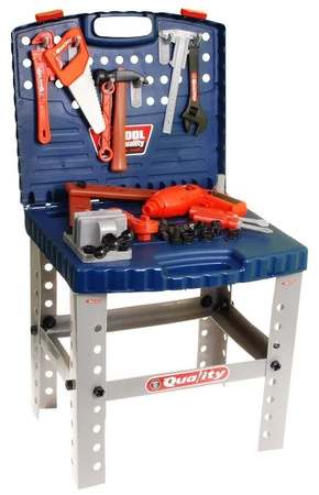 | Zestaw narzędzi w walizce z wiertarko-wkrętarką z efektami dźwiękowymi to propozycja dla dzieci od trzeciego roku życia. Zestaw zawiera: - wiertarko – wkrętarka na baterie (z regulacją obrotów lewo – prawo i wymiennymi 3 końcówkami), - młotek, - klucze (oczkowy, francuski, nasadowy z grzechotką, żabka), - suwmiarka, - imadło, - piła, - 2 śrubokręty z wymiennymi końcówkami, - 2 deski z otworami, - 16 nakrętek, - 22 śruby różnej długości, - haki do wieszania narzędzi w stacjonarnym warsztacie, - praktyczna walizka aby wszystko pomieścić. Wymiary: - walizka z narzędziami ok. 39,5 cm x 34,5 cm x 7,5 cm, - warsztat ok. 72 cm x 39 cm x 32 cm, - opakowanie ok. 39,8 cm x 35 cm x 8 cm |