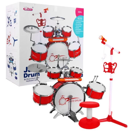 Zestaw muzyczny Perkusja + Keyboard + Mikrofon dla dzieci 3+ czerwony Dźwięki Światła