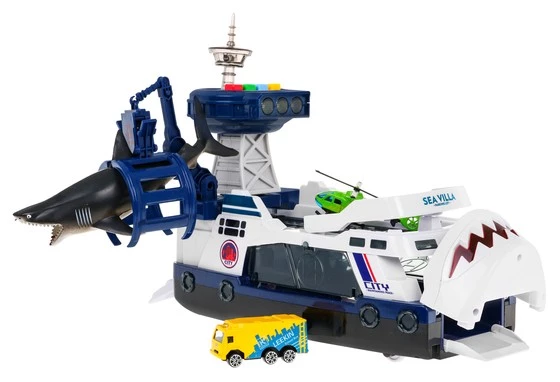 Interaktywna łódź policyjna dla dzieci 3+ Akcesoria rekin auto helikopter