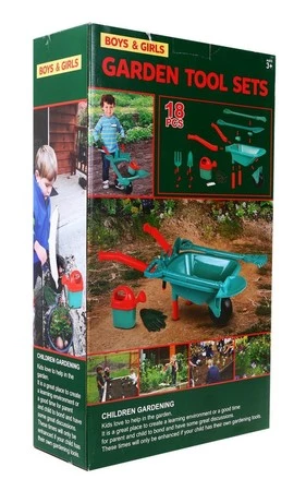 | - duża taczka (ok. 76 cm x 42 cm, wymiar samej taczki ok. 45 cm x 30 cm), - łopata (ok. 60cm x 14,5 cm), - grabie (ok. 59 cm x 15 cm), - konewka (ok. 20 cm x 22 cm), - rękawice (długość ok. 18 cm, długość palca ok. 5 cm), - małe widły (ok. 17 cm x 8 cm), - mała łopatka (ok. 18 cm x 6,5 cm). |