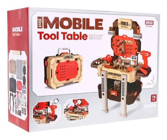 | | Bogato wyposażony warsztat z interaktywną wiertarką, pilarką i akcesoriami to propozycja dla dzieci od 3-go roku życia. Zestaw składa się z 78 elementów do złudzenia przypominających realne narzędzia. Wiertarko-wkrętarka wydaje odgłosy towarzyszące wkręcaniu i wykręcaniu oraz posiada dwie wymienne końcówki. Poszczególne narzędzia można dowolnie rozmieścić na praktycznym stojaku. Po skończonej zabawie, wszystkie elementy można zamknąć w dużej walizce na narzędzia z wygodną rączką do przenoszenia. Zabawka zasilana jest bateriami typu 2 x AA (brak w zestawie). |