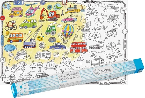 | | A Ty znasz już wszystkie pojazdy? Lubisz jeździć z rodzicami samochodem? Marzysz o locie balonem? Jakie znasz jeszcze pojazdy? Na dużym plakacie zmieściły się prawie wszystkie! Pokoloruj je farbami, kredkami lub flamastrami. |