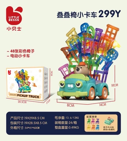 - autko, - krzesła: * 8 x czerwone, * 8 x pomarańczowe, * 8 x żółte, * 8 x jasnozielone, * 8 x błękitne, * 8 x fioletowe - instrukcja. |