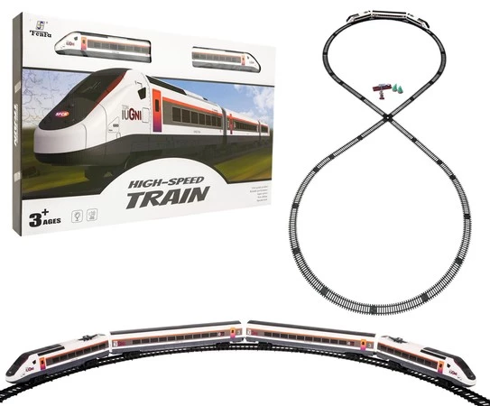 - 2 x lokomotywa, - 2 x wagony kolejki, - elementy konstrukcyjne toru, odcinki proste, zwrotnica, - sygnalizacja świetlna, - stacja, - słup, - 2 x drzewko. |
