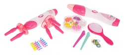 Bogato wyposażony zestaw 2 w 1 do zaplatania włosów w warkocze i aplikacji koralików to propozycja dla dzieci od 5-go roku życia. W zestawie znajdują się dwa urządzenia do stylizacji włosów. Jest tutaj maszynka do zaplatania włosów w warkocze i maszynka do aplikacji koralików na włosach, oraz szczotka do włosów, koraliki, spinki, gumki. Maszynka do zaplatania warkoczy zasilana jest bateriami typu 2 x AA 1,5 V (brak w zestawie), a maszynka do aplikacji koralików nie wymaga użycia baterii. Użycie urządzeń jest bardzo proste. Aby, zapleść włosy wystarczy włożyć 2 pasma włosów a przy warkoczach 3 pasma do otworów w bolcach i przesunąć przycisk z diamentem w górę. Natomiast, aby zaaplikować koralik na włosach, wystarczy włożyć koralik na aplikator, następnie przełożyć pasmo włosów przez haczyk w aplikatorze i przesunąć diamencik znajdujący się na środku urządzenia w górę. Przytrzymujemy koralik i usuwamy aplikator. Gotowe! |