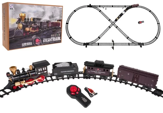 Zdalnie sterowana Kolejka Retro dla dzieci 5+ Tor 247 cm + Pilot 2,4 GHz + Dźwięki Światła + Funkcja Dymu