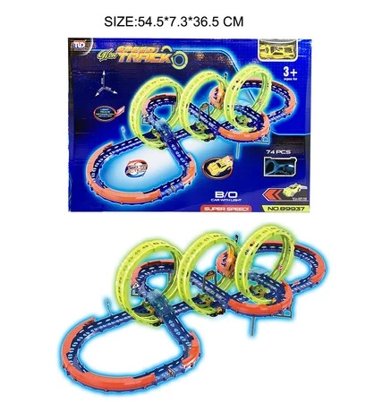 Ekstremalny Tor Wyścigowy dla dzieci 3+ Części konstrukcyjne 74 el. + Autko z LED + Pętle 360