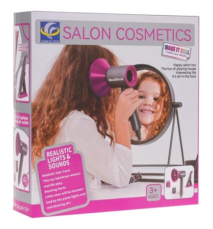 Interaktywny, bogato wyposażony zestaw fryzjerski z suszarką posiadającą wymienne dysze i prostownicą do włosów na baterie, to propozycja dla dzieci od 3- go roku życia. W zestawie znaleźć możemy szeroką gamę narzędzi niezbędnych w pracy fryzjera w tym suszarkę, prostownicę, nożyczki, grzebienie do włosów i inne akcesoria. Suszarka do włosów wydaje odgłos suszenia i emituje strumień powietrza. Prostownica posiada efekty świetlne oraz odgłosy towarzyszące prostowaniu włosów. Suszarka do włosów zasilana jest bateriami typu 2 x AA (brak w zestawie), prostownica bateriami 2 x AAA (brak w zestawie). Funkcje zestawu: - suszarka z wymiennymi nasadkami (dyfuzor, nasadka skupiająca, końcówka Root Boost) - suszarka emituje strumień powietrza, - suszarka wydaje odgłosy suszenia, - prostownica posiada suwak do zamykania i otwierania, - prostownica posiada oświetlenie, - prostownica wydaje odgłosy charakterystyczne dla prostowania włosów, - praktyczny stojak na suszarkę lub prostownicę. |