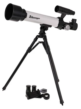 Zabawkowy Teleskop ze Statywem to doskonały zestaw dla małych pasjonatów astronomii już od 8 roku życia. W zestawie znajduje się okular prostujący, który umożliwia uzyskiwanie bezpośredniego, prostego obrazu, a także 2 okulary o różnym stopniu powiększenia (30 x i 60 x). Zestaw jest bardzo łatwy w obsłudze. W zestawie znajduje się również uchwyt na telefon.