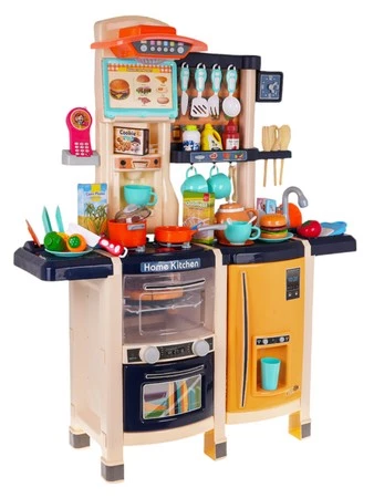Interaktywna kuchnia z funkcją światła, dźwięku i kranikiem, z którego wydobywa się woda, a także mnóstwem akcesoriów, dla dzieci od 3-go roku życia. Kuchnia została znakomicie wykonana, z najlepszej jakości plastiku i jest w żywych kolorach zachęcających dziecko do zabawy. Na blacie kuchni znajduje się interaktywna płyta z palnikami. Po przekręceniu jednego z pokręteł słychać odgłosy gotowania, a drugiego, odgłosy smażenia. Odgłosom gotowania i smażenia towarzyszy podświetlenie palników. Z kranu faktycznie wypływa woda, jak w prawdziwym zlewie, dziecko będzie mogło umyć zabawkowe naczynia. W zestawie mamy też atrapę lodówki z otwieranymi drzwiczkami i dystrybutorem wody, otwierany piekarnik z efektami dźwiękowymi i świetlnymi, zmywarkę, ekspres do kawy, panel z wentylatorem oraz efektami dźwiękowymi i świetlnymi, telefonik z dźwiękiem i światłem oraz mnóstwo półeczek, na których ułożyć możemy atrapy produktów. Cały zestaw prezentuje się znakomicie. Zabawka zasilana jest bateriami typu 6 x AA 1,5 V (brak w zestawie) oraz 2 x AAA 1,5 V (brak w zestawie). Funkcje zestawu: - odpowiednia dla dzieci od 3-go roku życia, - wykonana z najlepszej jakości plastiku w żywych kolorach, - bogato wyposażona, zestaw składa się aż z 65 elementów, - ruchome pokrętła, - palniki z podświetleniem, - odgłosy smażenia i gotowania, - kran z lecącą wodą, - otwierana lodówka z atrapą dystrybutora wody, - otwierany piekarnik z dźwiękami i światłem, - otwierana zmywarka, - wbudowany ekspres do kawy, - panel z wentylatorem oraz światełkami i dźwiękami, - telefonik z odgłosami (dzwonki, odgłosy zwierząt, piosenka) i podświetlaną anteną, - ramka na karty z przepisami, - zegar z ruchomymi wskazówkami, - 3 produkty (ryba, rak, kawałek mięsa) zmieniają kolor po włożeniu do szybkowaru. |