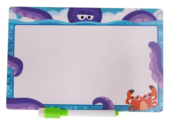 Drewniana dwustronna tablica ze zwierzaczkami dla dzieci od 3-go roku życia. Z jednej strony tablica służy do malowania pisakiem dołączonym do zestawu. Pisak posiada też gumkę, by można było wyczyścić obrazek i malować ponownie. Z drugiej strony tablicy jest rysunek dżungli i wgłębienia na ułożenie zwierzaczków z drewnianych klocków. Wśród zwierzaczków mamy zebrę, lwa, słonia, pawia, żyrafę i krokodyla. Zestaw wykonano z dbałością o szczegóły, w żywych kolorach.