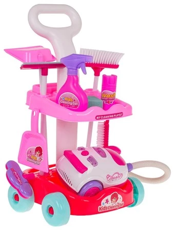 Bogato wyposażony zestaw sprzątający z interaktywnym odkurzaczem dla dzieci od 3-go roku życia. Zestaw wykonany został z najlepszej jakości plastiku w żywych kolorach. Na zestaw składa się wózek z rączką do pchania i kółeczkami oraz dwoma półeczkami, interaktywny odkurzacz, miotła i akcesoria do sprzątania. Odkurzacz zasilany jest bateriami typu 3 x AA 1,5 V (brak w zestawie), wydaje odgłosy odkurzania, posiada oświetlenie oraz wciąga drobne zanieczyszczenia z powierzchni. Funkcje zestawu: - przeznaczony dla dzieci od 3-go roku życia, - wykonany z plastiku najlepszej jakości w żywych kolorach, - stabilny wózek z rączką i kółeczkami oraz 2 półeczkami, - interaktywny odkurzacz z odgłosami odkurzania, oświetleniem i zbierający drobne zanieczyszczenia z powierzchni, - świetny sposób na naukę czystości. |