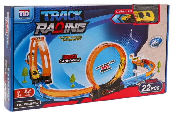 Tor wyścigowy z pętlami dla dzieci od 3-go roku życia. Tor wykonano z najlepszej jakości plastiku w żywych kolorach. Na zestaw składa się 22 elementy do samodzielnego montażu. Zestaw posiada odcinki proste do rozpędzenia pojazdu, pętlę 360 stopni i jeden pojazd. Pojazd napędzany jest napędem pull back. Wystarczy delikatnie nacisnąć pojazd do tyłu, by przejechał tor z pełną mocą. Funkcje toru: - odpowiedni dla dzieci od 3-go roku życia, - wykonany z najlepszej jakości plastiku w żywych kolorach, - 2 x pętla 360 stopni, - pojazd z napędem pull back. |
