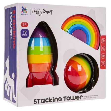 Zestaw zabawek sensorycznych do układania, dla dziecka od 18-go miesiąca życia. Zestaw składa się z 19 elementów w różnych kolorach, z których maluszek ułożyć może rakietę, tęczę i piłkę. Różnorodne, żywe kolory pobudzają zmysły maluszka i zachęcają do zabawy. Ten zestaw daje nieograniczone możliwości zabawy. Funkcje zestawu: - odpowiedni dla dzieci od 18-go miesiąca życia, - wykonany z najlepszej jakości materiałów, - bezpieczny dla maluszków, - różnorodność i bogactwo kolorów, - wiele elementów do ułożenia, - stymuluje zmysły dziecka, - rozwija zdolności manualne i zręcznościowe, - ćwiczy koncentrację i koordynację. |