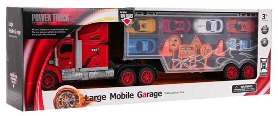 Duża ciężarówka z naczepą, autkami i akcesoriami dla dzieci od 3-go roku życia. Zabawka wykonana została ze świetnej jakości materiałów, w żywych kolorach. Duża ciężarówka posiada naczepę, w której znajduje się 6 autek, znaki drogowe i słupki. Naczepę możemy odłączać od pojazdu, wówczas uzyskamy walizkę na pojazdy z wygodną rączką do przenoszenia. Tylne drzwi naczepy są otwierane i tworzą platformę do wyjeżdżania pojazdów ze środka. Funkcje zestawu: - odpowiedni dla dzieci powyżej 3-go roku życia, - wykonany z wytrzymałych materiałów, - żywe kolory przyciągają uwagę dziecka, - odczepiana naczepa pojazdu, - otwierany tył i boki naczepy, - wygodna rączka do przenoszenia, - bogate wyposażenie. |