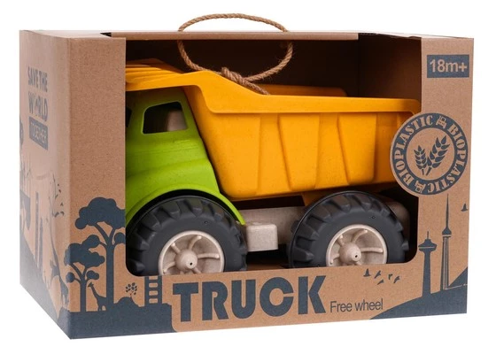 Wywrotka wykonana z bioplastiku dla dzieci od 18-go miesiąca życia. Eko-tworzywo jest bezpieczne dla dzieci i przyjazne dla środowiska. Pojazd jest wytrzymały i odporny na uszkodzenia, posiada ruchome elementy. Ręcznie możemy podnosić i opuszczać przyczepę pojazdu. Dzięki dużym kołom pojazd idealnie sprawdzi się do zabawy na zewnątrz, np. w piasku.