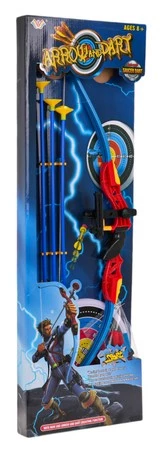 - łuk, - 6 x rzutki z przyssawką, - 3 x bełty, - tarcza z celem i gumową przyssawką. |