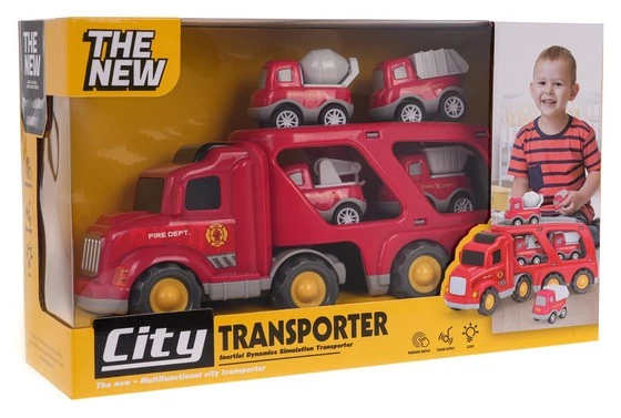 Interaktywny zestaw pojazdów, laweta z czterema pojazdami dla dzieci od 3-go roku życia. Zestaw wykonano w najwyższej jakości plastiku w żywych kolorach. Auto posiada odczepianą lawetę oraz otwieraną tylną burtę. Laweta mieści cztery pojazdy: wywrotkę, betoniarkę, dźwig i autko z kontenerem. Po naciśnięciu na przycisk znajdujący się na dachu kabiny ciężarówki mrugają przednie światełka pojazdu oraz słychać dźwięki odpalania pojazdu, jazdy i klaksonu. Autko zasilane jest bateriami typu 3 x AG13 (baterie w zestawie). Funkcje zestawu: - przeznaczony dla dzieci powyżej 3-go roku życia, - wykonany ze znakomitej jakości plastiku w żywych kolorach, - odczepiana laweta, - otwierana burta lawety, - efekty świetlne: mrugające przednie światła, - efekty dźwiękowe: dźwięki odpalania pojazdu, jazdy i klaksonu, - 4 pojazdy w zestawi: wywrotka, betoniarka, dźwig, autko z kontenerem. |
