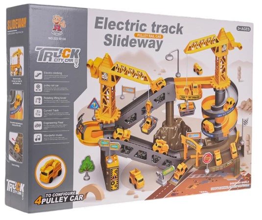 Plac budowlany z dwoma dźwigami, zjeżdżalniami i autkami dla dzieci od 3-go roku życia. Zestaw składa się z 44 elementów, wykonany został z najlepszej jakości plastiku w żywych kolorach przyciągających wzrok dziecka. Dźwigi posiadają ruchome elementy. Mogą obracać się wokół własnej osi za pomocą kółka zębatego znajdującego się u ich podstawy, oraz posiadają opuszczany i podnoszony hak. Ruchome szyny, transportujące pojazdy do góry zasilane są bateriami typu 3 x AA 1,5 V (brak w zestawie). Funkcje zestawu: - przeznaczony dla dzieci od 3-go roku życia, - wykonany z najlepszej jakości plastiku, - do samodzielnego montażu, - ruchome szyny transportujące pojazdy do góry, - zjeżdżalnia dla autek, - ruchome dźwigi (obrót o 360 stopni, podnoszony i opuszczany hak). |