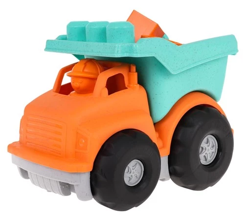Wywrotka wykonana z bioplastiku i klocki, dla dzieci od 3-go roku życia. Eko-tworzywo jest bezpieczne dla dzieci i przyjazne dla środowiska. Wywrotka jest kolorowa, wytrzymała i odporna na uszkodzenia, posiada ruchome elementy. Przyczepę wywrotki można podnosić i opuszczać. Maluszek może również manualnie przesuwać pojazd po podłożu, dzięki dużym ruchomym kółeczkom. W zestawie z wywrotką znaleźć możemy również 7 klocków, również wykonanych z bioplastiku. Funkcje zestawu: - zestaw wykonany z ekologicznych materiałów, - ruchome kółeczka pojazdów, - podnoszona i opuszczana manualnie przyczepa wywrotki, - wyjmowany kierowca wywrotki, - brak ostrych zakończeń, opływowe kształty, - żywe kolory przyciągające wzrok dziecka, - odporny na uszkodzenia. |