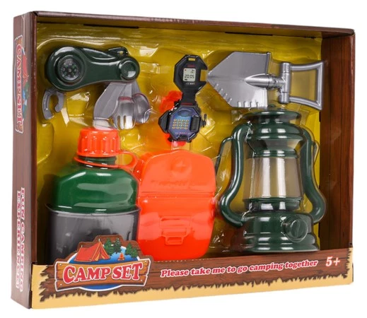 Zestaw kempingowy dla dzieci od 3-go roku życia. W skład zestawu wchodzi: lampa, manierka, niezbędnik, zegarek, pojemnik na żywność oraz łopatka. Z tym zestawem dziecko poczuje się jak prawdziwy odkrywca. Lampa zasilana jest bateriami typu 3 x AG13 (w zestawie). Funkcje zestawu: - odpowiedni dla dzieci od 3-go roku życia, - wykonany z najlepszej jakości materiałów, - lampa posiada podświetlenie. |