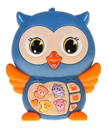 Interaktywna sowa z funkcją dźwięku i światła dla dzieci od 6-go miesiąca życia. Sowa wykonana została z najlepszej jakości plastiku, jest odporna na uderzenia i bezpieczna dla maluszków, nie posiada, żadnych ostrych krawędzi. Sowę wykonano w żywych kolorach, przyciągających wzrok dziecka i zachęcających do zabawy. Na brzuszku sowy znajduje się panelik z przyciskami uruchamiającymi odgłosy zwierząt (w pierwszym trybie), melodie, dźwięki Do-Re-Mi (w drugim trybie) oraz efekty świetlne w postaci migoczących światełek na skrzydełkach sowy. Tryby zmieniamy przyciskiem w kształcie serduszka. Zabawka posiada regulację głośności. Zasilana jest bateriami typu 2 x AA 1,5 V (brak w zestawie) Funkcje zabawki: - przeznaczona dla dzieci od 6-go miesiąca życia, - wykonana z najlepszej jakości plastiku w żywych kolorach, - bezpieczna, nie posiada ostrych krawędzi, - odporna na upadki, - efekty świetlne: podświetlane skrzydła sowy, - efekty dźwiękowe: * tryb z odgłosami zwierzątek: pieska, kotka, małpki, owieczki, tygrysa, słonia, * tryb z dźwiękami: melodie, dźwięki Do-Re-Mi. |