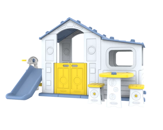 | Specyfikacja | Domek ogrodowy ze zjeżdżalnią, koszykówką oraz ze stolikiem |