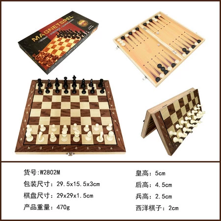 - plansza ok. 29 cm x 29 cm x 1,5 cm, - pionek do szachów ok. 2,5 cm, - pionek do warcab i tryktraka ok. 2 cm, - kostka ok. 1 cm x 1 cm x 1 cm, - opakowanie ok. 29,5 cm x 15,5 cm x 3 cm. |