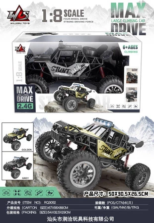 Metalowy crawler STUNT Racing Szary w skali 1:8, zdalnie sterowany z napędem na cztery koła to propozycja dla dzieci od szóstego roku życia. Duże gumowe, antypoślizgowe opony, sprężynowe zawieszenie sprawia, ze pojazd bez problemu pokona każdą powierzchnię. Crawler wykonany jest z wysokiej jakości materiałów, ma metalową karoserię, co zapewnia mu wytrzymałość. Silnik zastosowany w pojeździe pozwala na rozwinięcie dużej prędkości. Zabawka zasilana jest akumulatorem typu 7,4V (w zestawie), pilot bateriami typu 4 x AA 1,5 V (brak w zestawie).