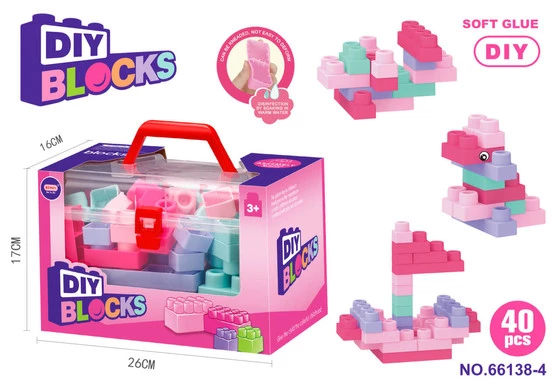 Zestaw kolorowych miękkich klocków dla dzieci od trzeciego roku życia. Zestaw wykonano z bezpiecznego dla dzieci i środowiska materiału PVC. Klocki są lekkie i nie posiadają ostrych zakończeń. Bardzo łatwo je utrzymać w czystości, po wyparzeniu, nie tracą kolorów. Klocuszki możemy dowolnie wyginać, a po wygięciu wracają do swojego poprzedniego kształtu.