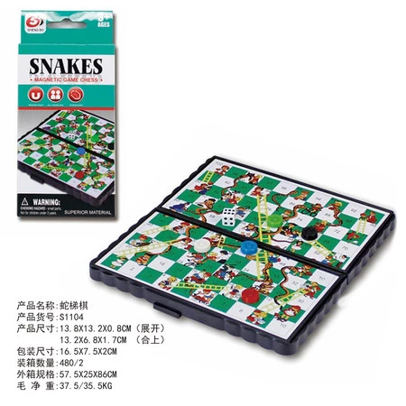 Magnetyczna gra Drabiny i Węże dla dzieci od trzeciego roku życia. Gra jest niewielkich rozmiarów, dzięki czemu można ją zabrać wszędzie ze sobą, pionki są magnetyczne, dobrze trzymają się planszy. W tym zestawie metalowe pudełko gry służy nam za planszę, dzięki czemu gabaryt gry ograniczony jest do minimum. Zasady gry: Jest to gra skierowana dla 2 lub więcej graczy. Należy umieścić pionki na polu nr 1. Gracze rzucają kostką i przesuwają pionki o wylosowaną liczbę. Pola z drabiną wiodą gracza w górę planszy, natomiast z te wężami spychają w dół. Będąc blisko końca, trzeba wylosować dokładnie taką liczbę, ile pól zostało do mety. Kto pierwszy, ten lepszy. Funkcje: - dla dzieci od trzeciego roku życia, - magnetyczna gra rodzinna, - może być zabrana wszędzie, dzięki swoim niewielkim wymiarom, - wykonana z najlepszej jakości materiałów. |