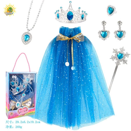 - śliczna długa peleryna, - korona, - pierścień, - kolczyki, - naszyjnik, - różdżka. |