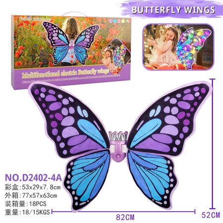 Magiczne, fioletowe skrzydła motyla z efektem światła, dla dzieci od trzeciego roku życia. Zabawka wykonana została z dbałością o szczegóły, twoja pociecha poczuje się w nich magicznie. Skrzydła idealne będą na bal, przedstawienie lub do codziennej zabawy. Zabawka zasilana jest bateriami typu 4 x AA 1,5 V (brak w zestawie). Skrzydła pracują w kilku trybach: - muzyka, trzepotanie, światełka na skrzydłach, - trzepotanie, światła, - trzepotanie, mruganie światła, - trzepotanie.
