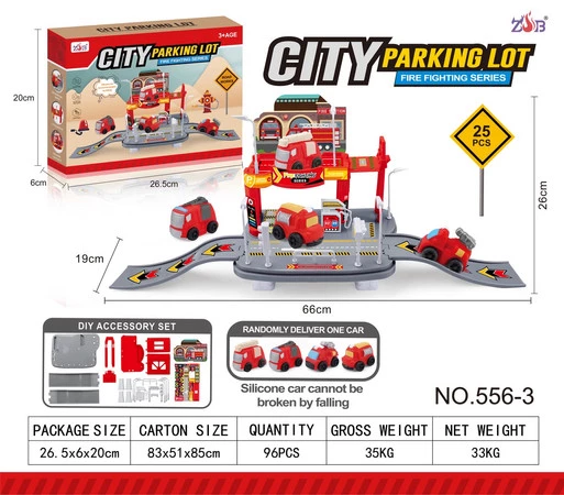 Zestaw parking Straży Pożarnej z pojazdem strażackimi to propozycja dla dzieci od trzeciego roku życia. Zestaw składa się z 25 elementów wykonanych z najlepszej jakości materiałów w żywych kolorach. Samochodzik wykonano z silikonu. Parking jest dwupiętrowy, na pierwszym piętrze znajduje się parking, z którego możemy zjechać windą na parter (manualnie). Parter mieści stację benzynową, drogę ze znakami oraz wjazd i wyjazd w formie zjeżdżalni. Zestaw idealny dla małych miłośników straży pożarnej.