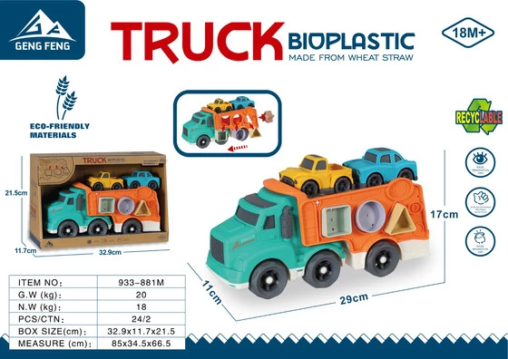 Zestaw laweta, pojazdy, sorter wykonany z bioplastiku dla dzieci od osiemnastego miesiąca życia. Zestaw składa się z pojazdu i dużej lawety, po bokach której znajduje się sorter kształtów, klocuszki i 2 autka. Eko-tworzywo jest bezpieczne dla dzieci i przyjazne dla środowiska. Pojazdy są kolorowe, wytrzymałe i odporne na uszkodzenia. Lawetę możemy odpinać od pojazdu. Idealna zabawka do domu jak i na zewnątrz. Funkcje zestawu: - odpowiedni dla dzieci powyżej osiemnastego miesiąca, - zestaw wykonany z ekologicznych materiałów, - ruchome kółeczka pojazdów, - opływowe kształty, - żywe kolory przyciągające wzrok dziecka, - odporny na uszkodzenia, - sorter kształtów, - odpinana laweta. |