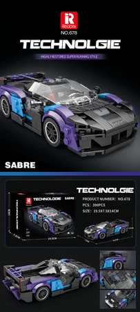 Zestaw Klocków Auto Sportowe Czarno Niebieskie 390el.